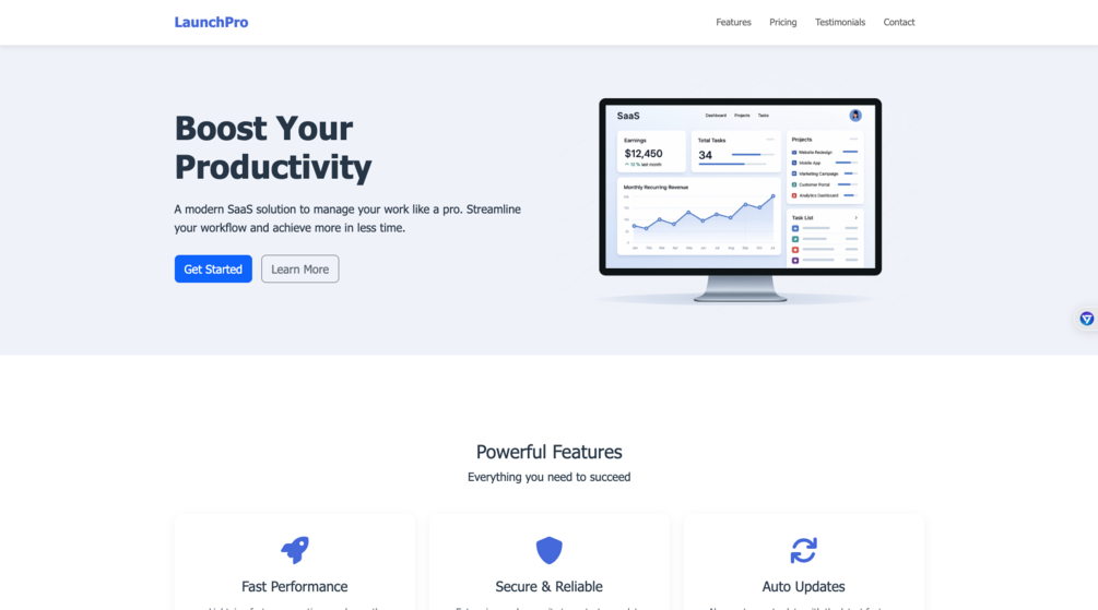 Whether you're launching a SaaS startup or building landing pages for clients, this template will save you hours of design and development time.
